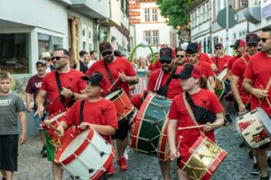 Der Samstag begann mit dem Neubürgertag und dem traditionellen Warm-Up. Am Abend erlebten die Besucher:innen dann einen der Höhepunkte des Wochenendes: den stimmungsvollen Marscha São João mit dem Rancho Folclórico, den Roten Teufeln und dem leuchtenden Johannisfeuer.