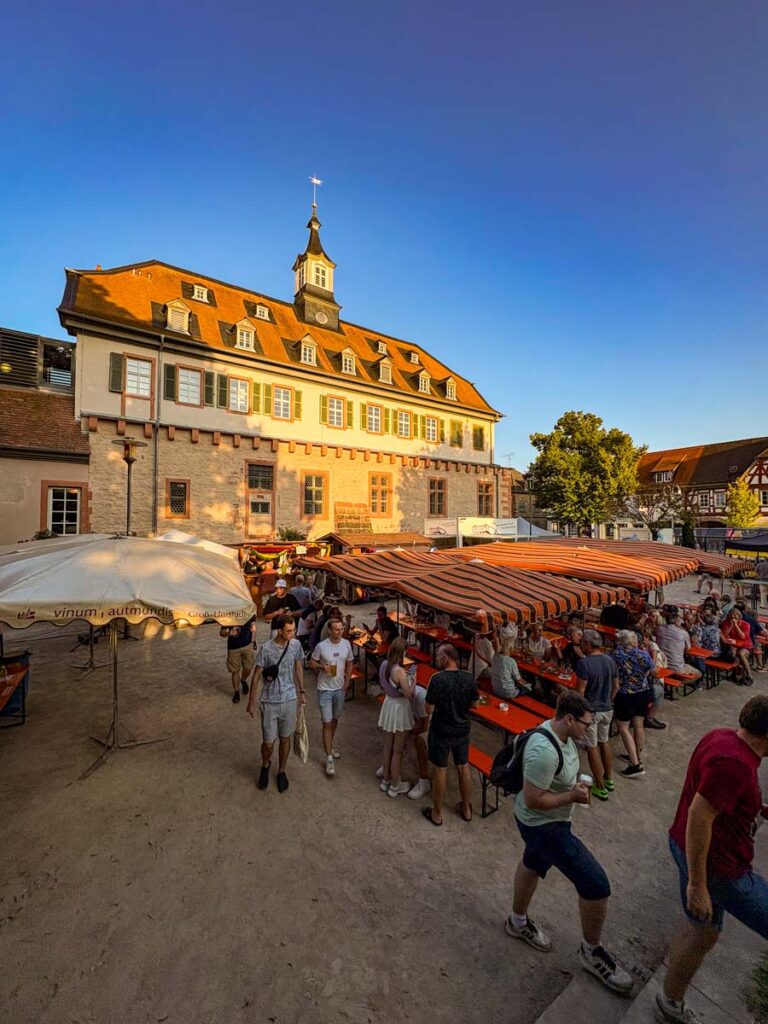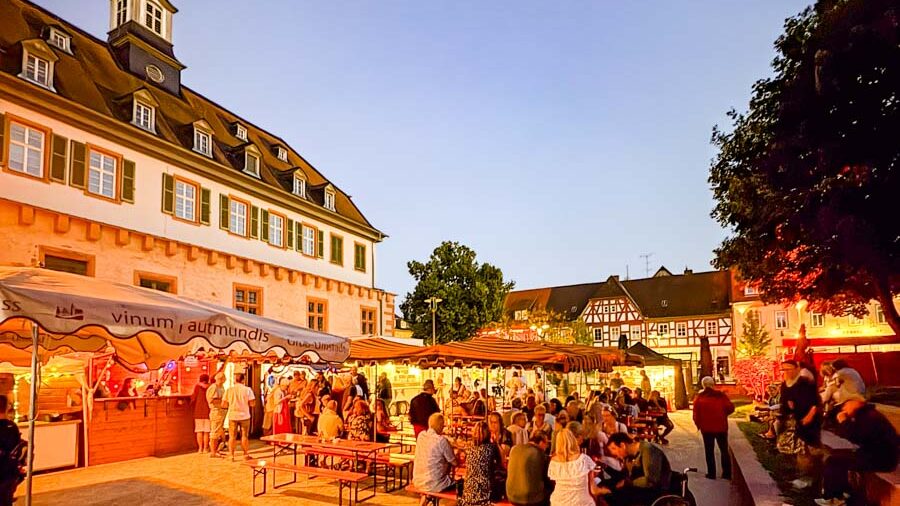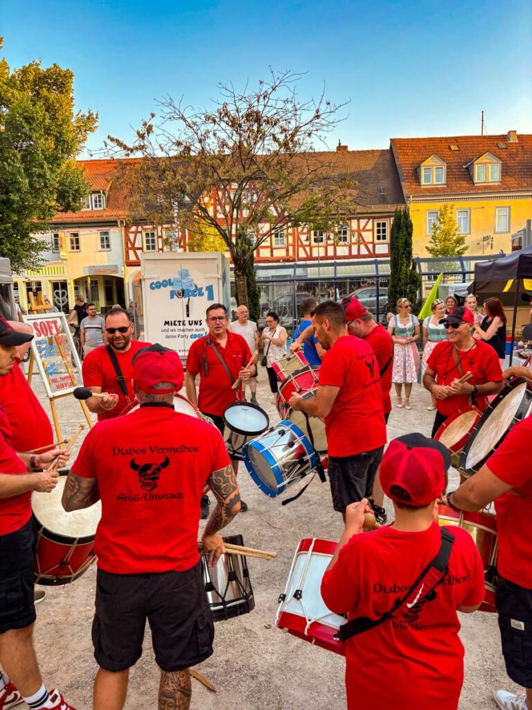 Am Samstag ging es ab 12 Uhr los. Die Gäste konnten in gemütlicher Atmosphäre das Weindorf genießen. Ein besonderes Highlight war der feierliche Einmarsch der Roten Teufel und der Weinhoheiten gegen 20 Uhr der von den Gästen mit großem Applaus begleitet wurde. Anschließend stand mit der Band Slow Frat wieder Live-Musik auf dem Programm – ein gelungener Abschluss für einen ereignisreichen Tag.